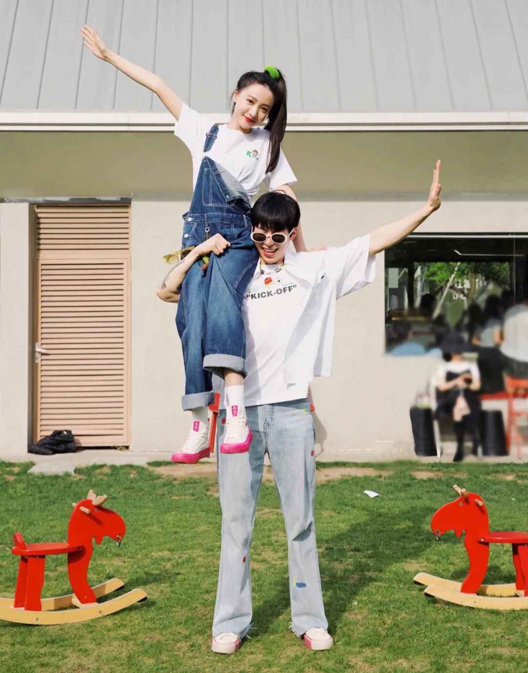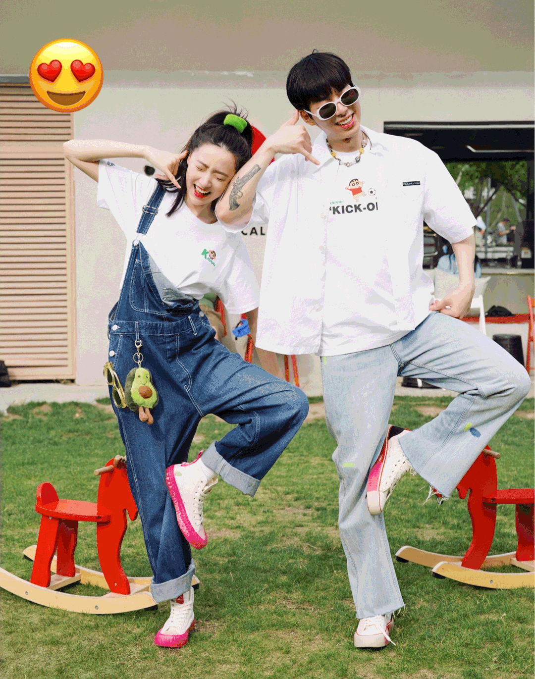 女生可以试试背带裤,青春感爆棚。虽然穿法不同,但站一起就是情侣范本
