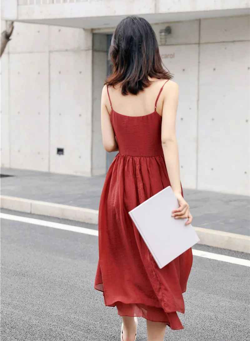 红裙配海滩=绝配,光背影就美哭!拍照百分百出片!