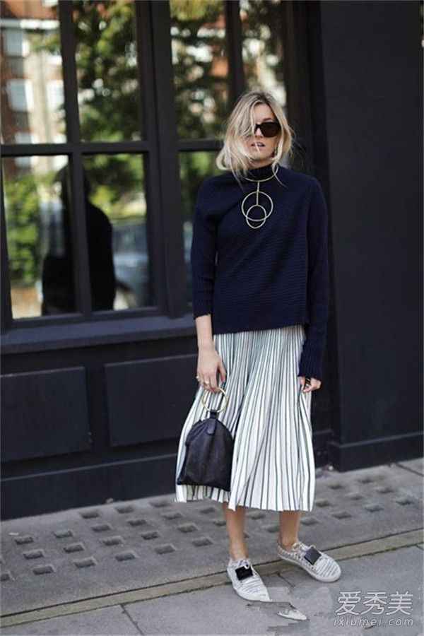 穿裙子配运动鞋时,最怕的就是显得矮墩墩、胖乎乎。这里有两个秘诀:一是强调腰线。不管是把上衣塞进裙子里,还是加根腰带,一定要把全身最细的腰部位置凸显出来,这是优化比例的关键-3-7。二是巧妙露肤。冬天当然不能真冻着,但你可以选择一双和运动鞋同色的中筒袜-3-7。这样既保暖,又在脚踝处形成了一个颜色延伸,视觉上特别显腿长,还增加了俏皮的学院风感觉。