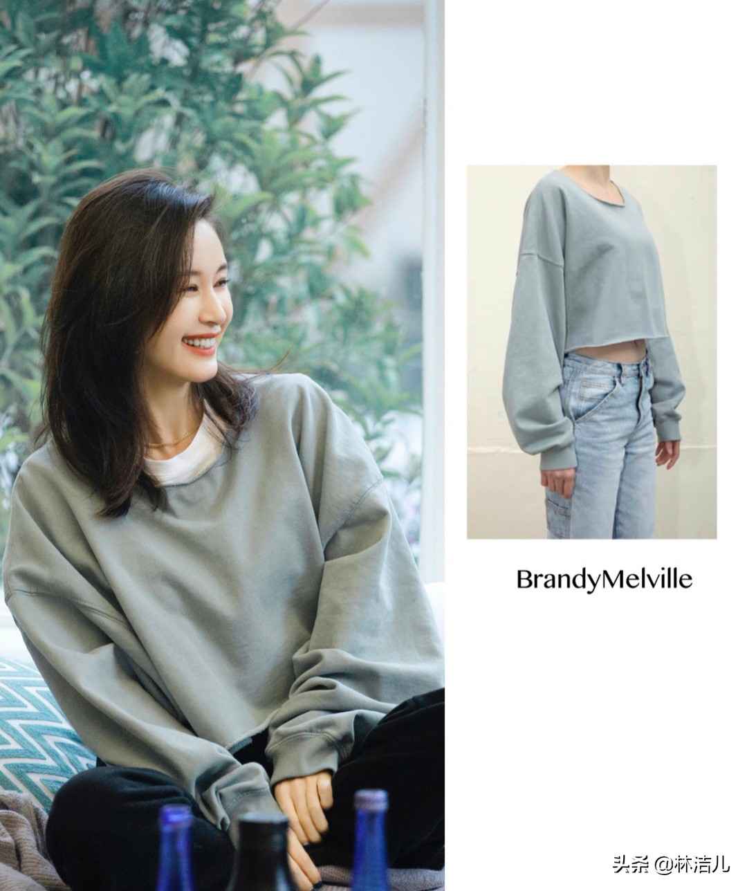 第一次约会她穿了brandy melville配白T恤,活力满满少女感十足,瞬间拉近和普通人的距离。