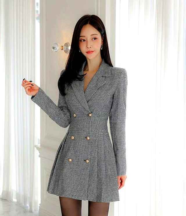 在办公室环境中,穿得太正式容易显得呆板,太随意又可能不够专业。数据显示,千鸟格元素的西装裙是今年最受欢迎的款式之一。它的收腰设计能优雅地勾勒身形,加上双排金属扣和精致剪裁,更添高级感。这种经典图案的裙装不仅正式大方,还特别耐看。搭配黑丝和高跟鞋,既能突出职业气场,又散发温柔女人味,成为很多白领应对重要场合的首选。