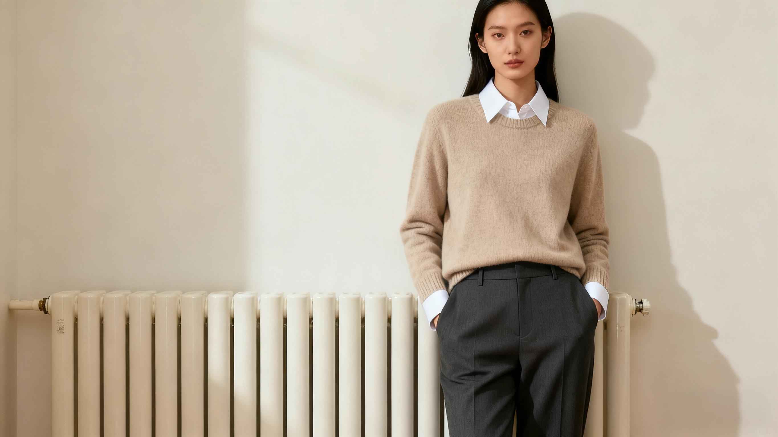 搭配的小心机全在细节里:领口叠穿更显精致,比如圆领打底配V领羊绒衫,再加翻领大衣,修饰脖子线条还显脸小;颜色控制在三种以内,用同色系或中性色搭点亮色,高级又不单调。下装可以选薄保暖裤加加绒牛仔裤或羊毛裤,室内不闷热,室外够暖和;配饰是点睛之笔,羊毛围巾、皮质手套既能锁住热量,进屋取下后秒变干练造型。