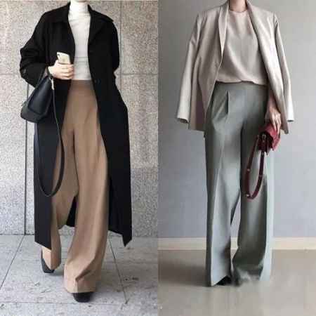 完全不会!阔腿裤简直是秋裤的“隐形斗篷”。选面料垂坠、有筋骨感的羊毛或西装阔腿裤,里面穿条紧身的加绒打底裤,一点痕迹都没有。外套首推H型的及膝长大衣或羽绒服,形成流畅的纵向线条,又暖又飒-3。怕压个子就选带腰带的款式,系上穿显比例。