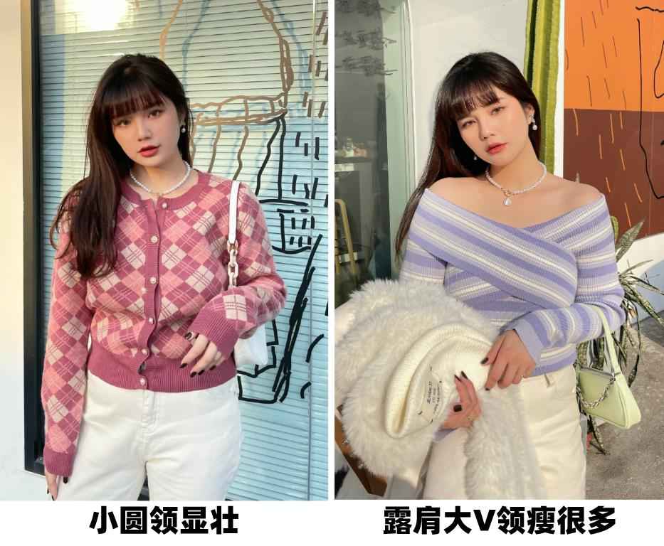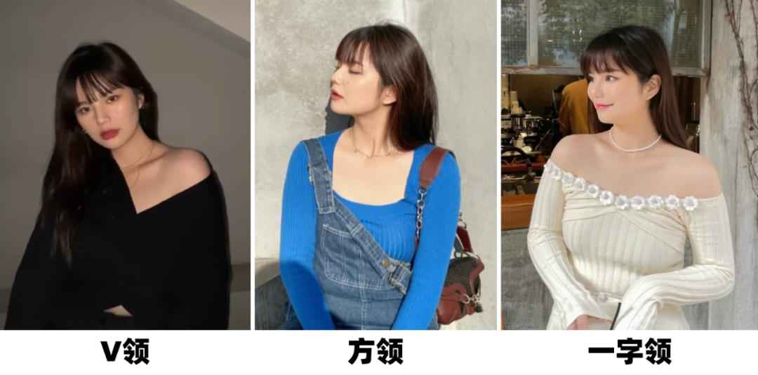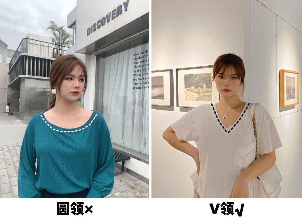 而且领口越大越显瘦,也更容易突出锁骨。来,看看对比图就知道效果了