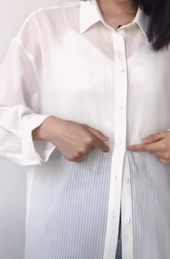 常规衬衫也可以手动做个交叉型收腰,超级显腰细显胸