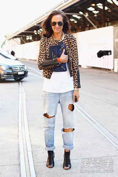 牛仔裤家族里还有些个性成员,比如妈妈牛仔裤、烟管裤(Cigarette Jeans),或者故意做了磨白、破洞的款式-4-5。搭这些裤子,思路可以再打开一点,玩一下风格碰撞,反而更有趣。