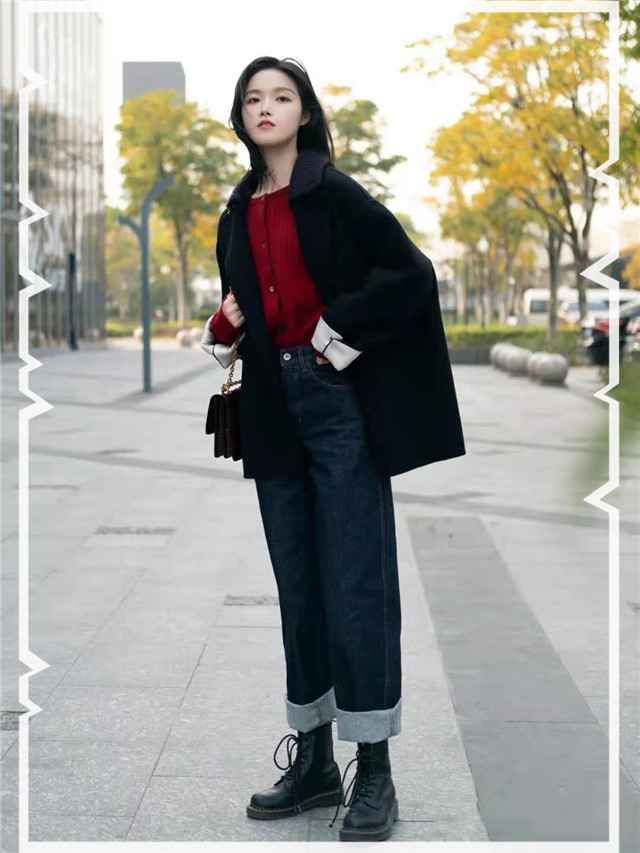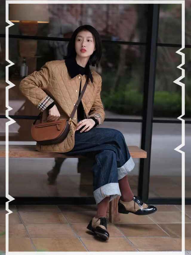 秋冬必备的菱格纹短羽绒,格子设计减轻厚重感,翻领利落不肿,袖口拼接更时髦。配深色牛仔阔腿裤,宽裤腿遮肉满分,卷起裤脚显腿长,再来双拼接皮鞋加长袜,复古又保暖。