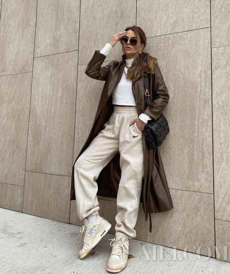 束脚裤+ oversized纯色T恤:这是刻在DNA里的懒人公式。选一件版型挺括的oversize白T或黑T,前摆随便往裤腰里一塞,那种随性的时髦感立马就来了-1。记住一个小秘诀,把裤脚的抽绳稍微收紧,露出最细的脚踝部分,显瘦效果直接翻倍-1。鞋子配双复古老爹鞋或者干净的小白鞋,清爽又帅气的少年感,毫不费力就拿捏了。
