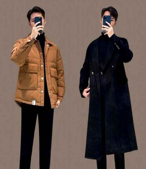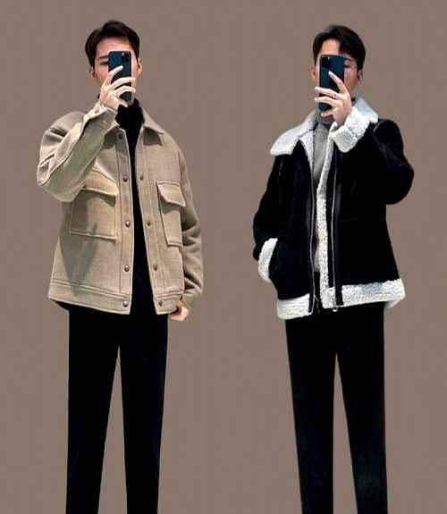 偏瘦男生秋冬可以穿叠搭,比如内搭毛衣外加外套,裤子选宽松款避免显瘦,颜色上深色系更显壮实。