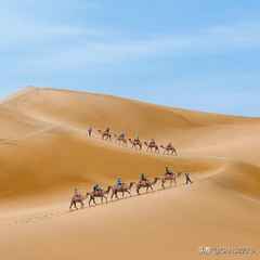 鸣沙山在敦煌,是无边黄沙、驼队和夕阳的奇景。主色调是沙子黄,搭好了照片超惊艳。