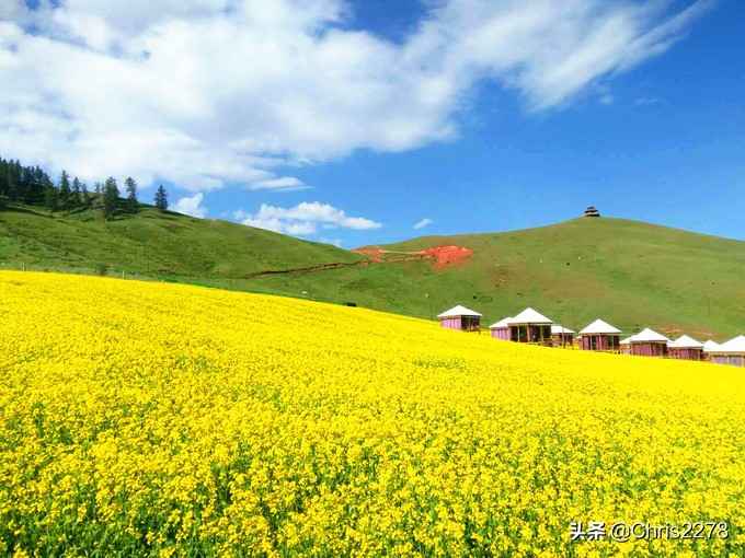 推荐穿法一:鲜艳的衣服,比如红色或亮黄色,在草原上很出彩。碎花裙也能走清新风。