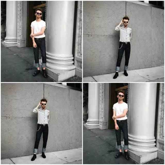 矮个子男生可以学Drew,露脚踝的同时还要露腰线。腰线是黄金比例的关键,盖住就矮5cm,露出就高5cm。
