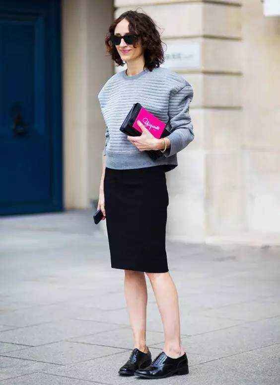 包臀裙本身是修身甚至紧身的,如果外套也选择非常贴身的款式,整体看起来会很有束缚感,对身材的要求也极高。聪明的办法是运用 “外松内紧” 或 “上短下紧” 的法则。比如,搭配一件略微宽松的短款西装或箱型外套-5,或者像街拍里那样,把外套随意地搭在臂弯,也能打破紧绷感,增添随意慵懒的风情-9。这样既能显身材,又不会让人觉得“勒得慌”。材质碰撞:玩转层次感